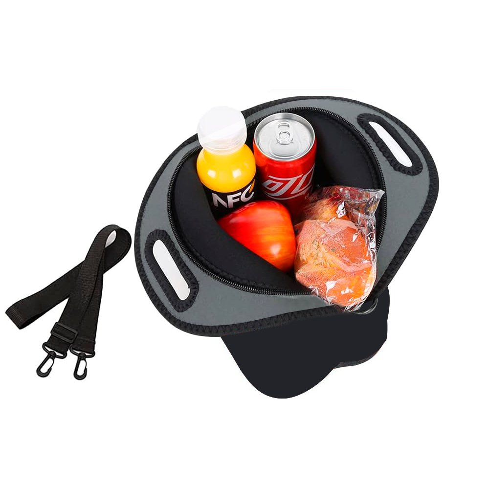 Nevera térmica elaborada en neopreno con cierre de cremallera. Con tiranta ajustable.  Tono interior gris. De 28 x 28 x 14 cm. ---------------------- Impresión: Screen  Tamaño Área Impresa: 15 x 15 cm. ---------------------------------------- Caja: 48x41x60 cm. 100 unidades 16.2 KG