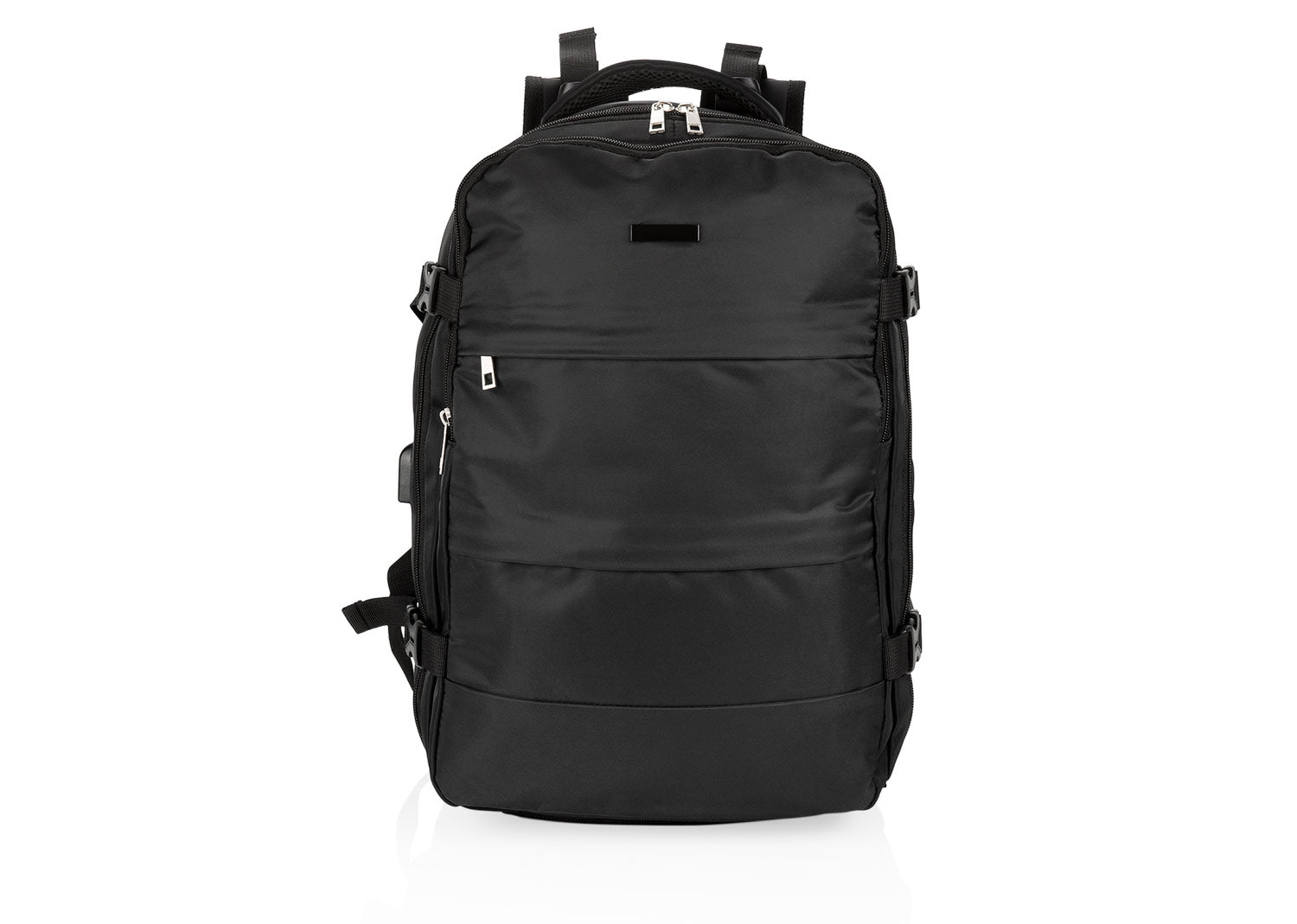 La maleta ideal para viajes en avión. Sus medidas alto x ancho x profundidad son aptas para la mayoría de vuelos, como equipaje de mano. Su bolsillo principal, de gran tamaño, se puede abrir hasta 180 grados lo que permite empacar fácilmente. Además, su diseño es multifuncional; incluye un compartimento especial para zapatos y un bolsillo frontal impermeable que se puede utilizar para artículos húmedos. Dotada con un puerto de carga USB que se puede conectar a un multicargador, así como varios bolsillos adicionales de diferentes tamaños y para distintos propósitos. Volumen aproximado: 24 litros.. Area impresion: Screen:16 cm X 7 cm. Láser Placa:3,5cm X 0,8 cm . Medidas Largo: 16.5 . Medidas Ancho: 32 . Medidas Alto: 45.5