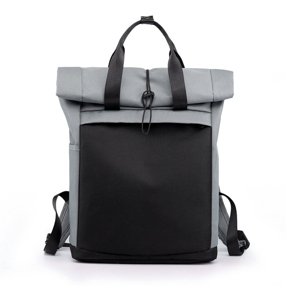 Tipo roll top en poliéster con manijas doble función.  Bolsillo principal XL para laptop. Bolsillo frontal con cremallera y lateral para bebidas. Capacidad 27-30 litros 12 kilos. De 30 x 14 x 41 cm. ------------------------------ Impresión: Screen, bordado Tamaño Área Impresa: 4 x 2.5 cm -------------------------------- Caja: 110 x 60 x 45 cm. 100 unidades 40 KG