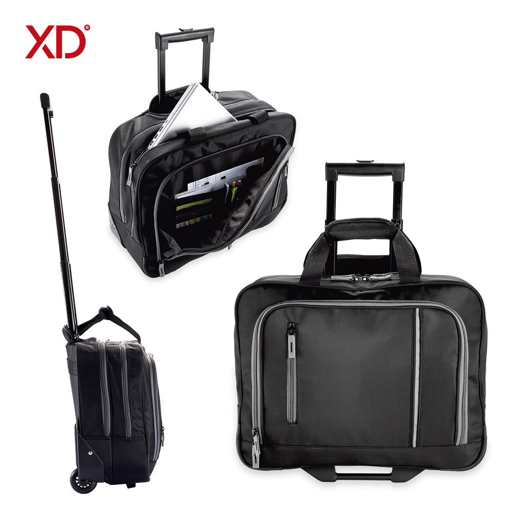 Elaborado en microfibra acolchada, con detalles en terciopelo. Cuenta con 2 bolsillos frontales con organizadores, compartimentos interiores separados para documentos y alojamiento para portátil de 17. Con manijas acolchadas para colgar y manija de arrastre para trolley. Medidas: 38 cm x 44 cm x 17 cm Marca: 15 cm Screen