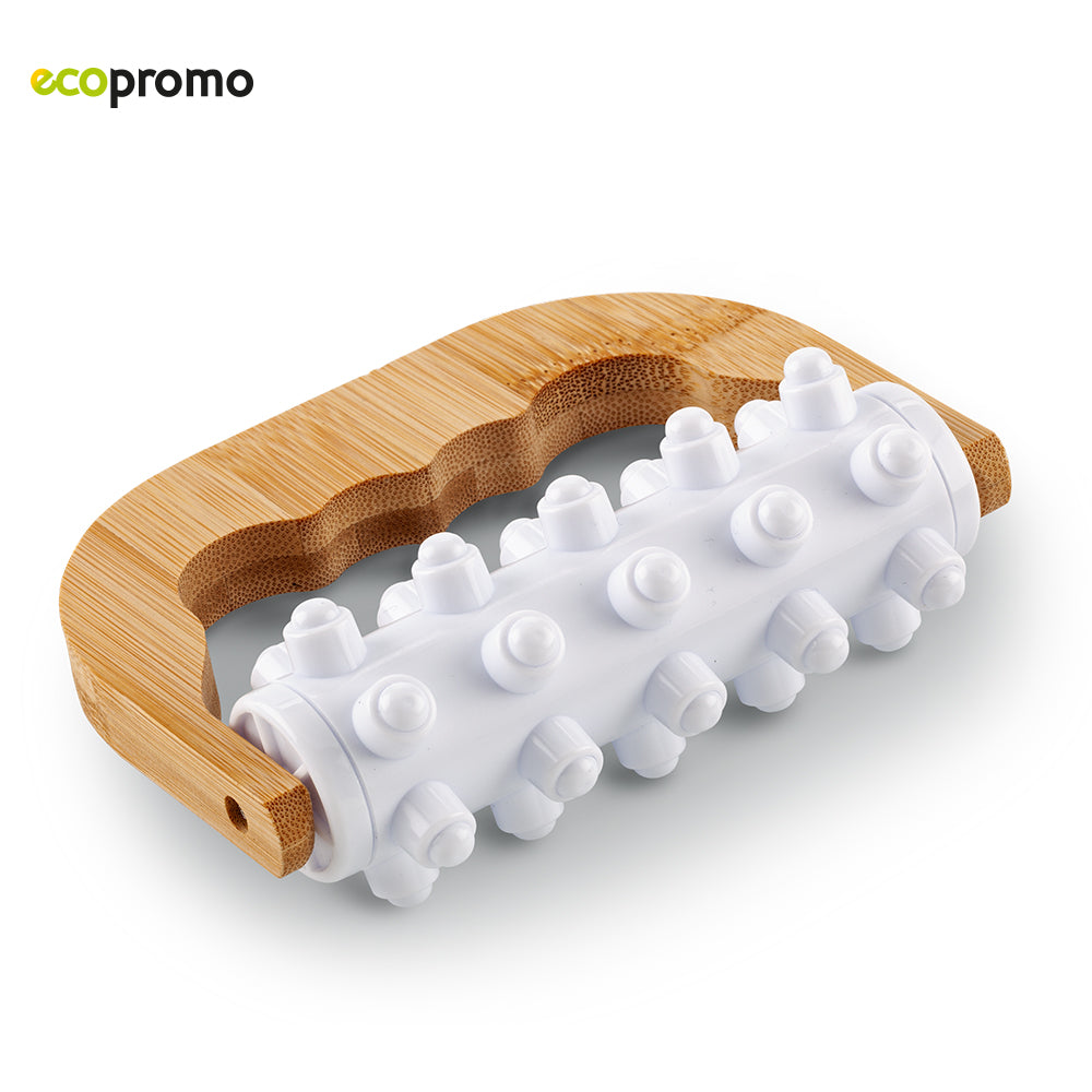 Masajeador plástico con bambú. Medidas: 13.5 cm x 11 cm x 5 cm. Marca: 5 cm Láser. Ficha Técnica