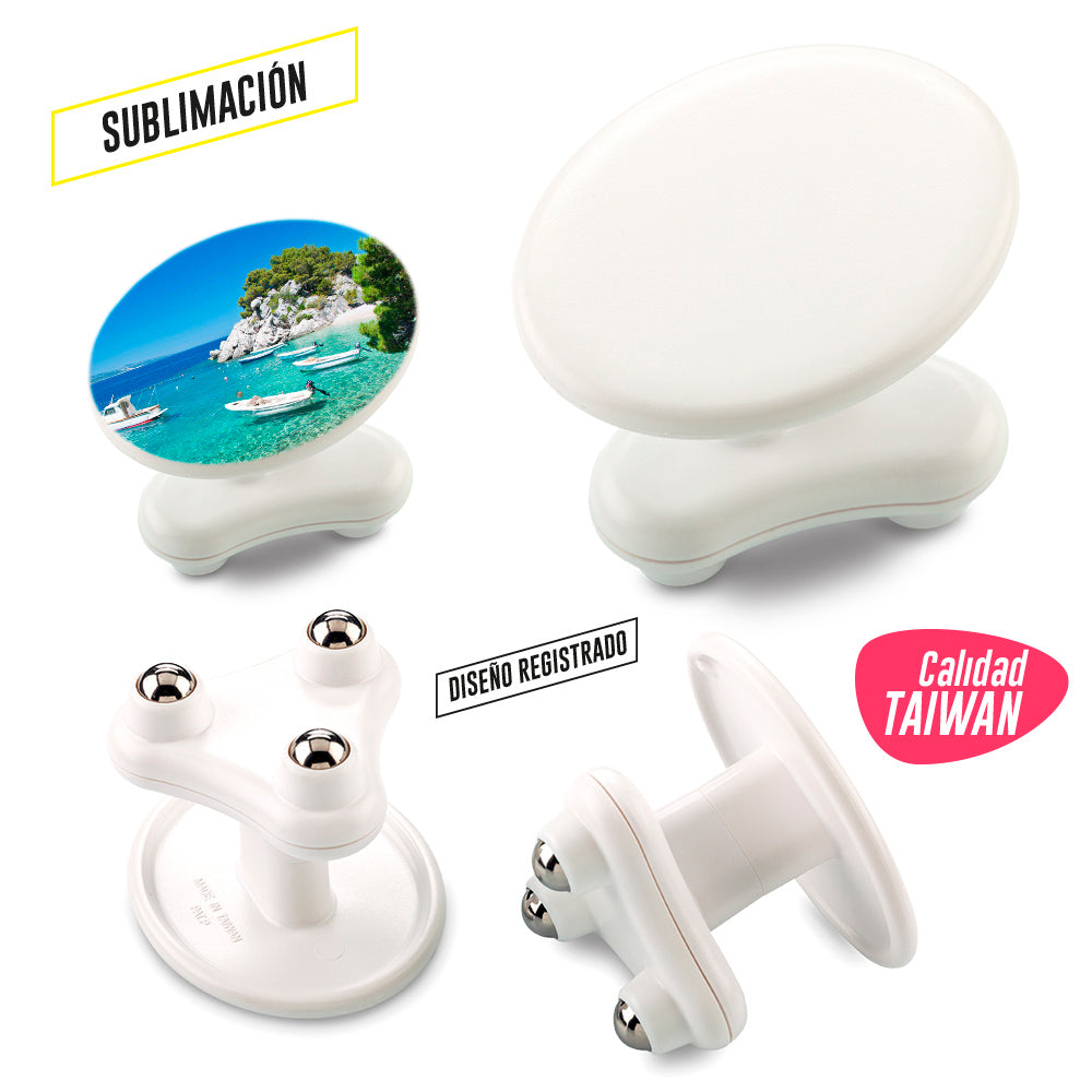 Mini masajeador plástico de tres puntas. Diseño y patente de Taiwan. Medidas:4.9 cm x 6 cm x 4.9 cm Marca: 6 cm x 4.8 cm Impresión digital full color sobre rígidos color blanco únicamente 3.5 cm Tampografía Ficha Técnica