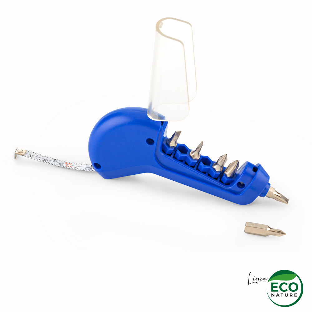 Mini set plástico de 6 piezas de destornilladores y metro de 1mt. Color natural en fibra de trigo. Empaque caja individual. Marca: 2 cm Tampografía. Medidas Caja: 11.4 cm x 7 cm x 2 cm. Ficha Técnica
