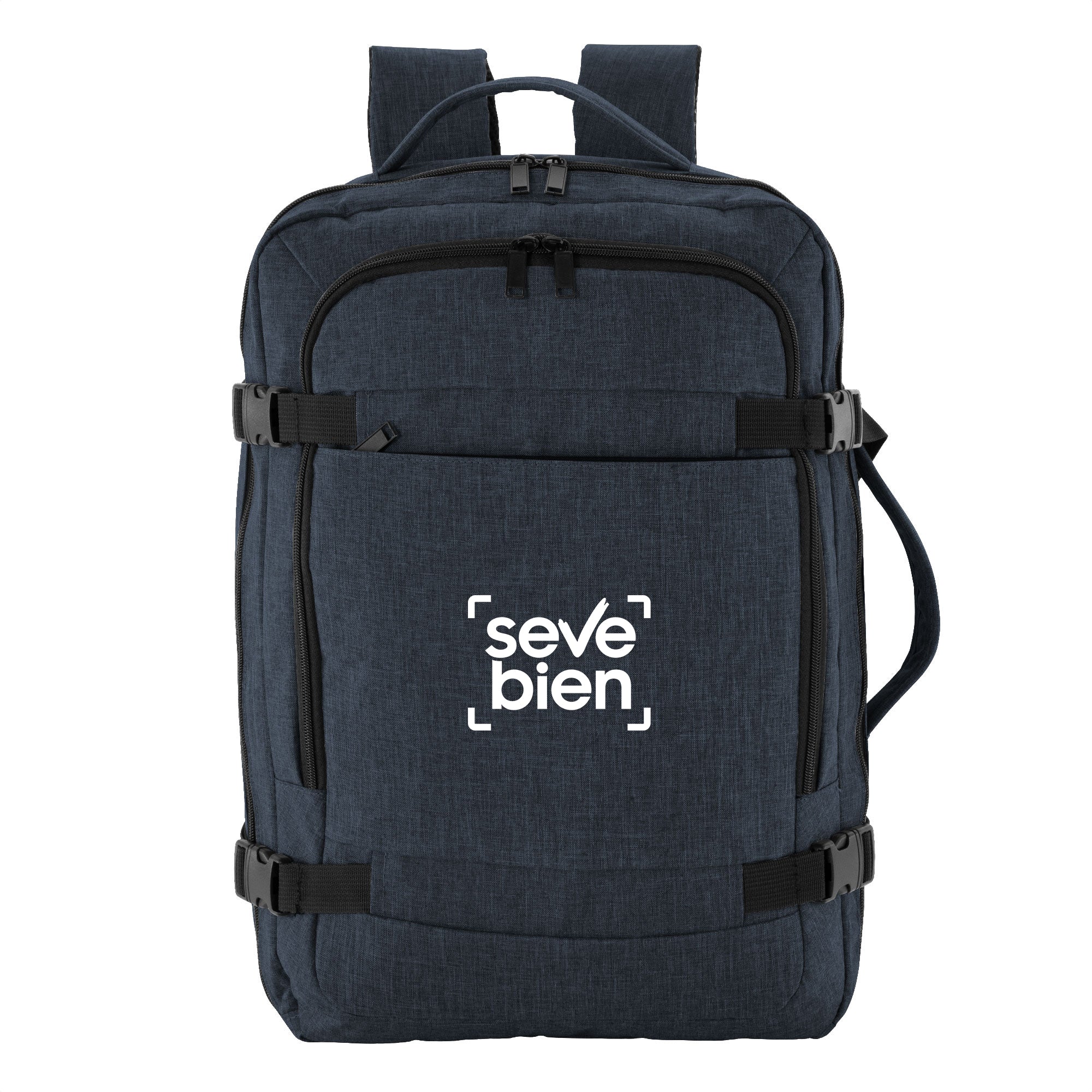 Viaja con todo lo que necesitas.Morral carry on con 4 compartimentos acolchados. Compartimento principal central con cierre de apertura 360° y elástico con hebilla para contener la ropa en un viaje de trabajo. Compartimento posterior con cierre y portanotebook de hasta 17 pulgadas. Compartimento frontal, exterior con cierre horizontal e interior con bolsillos organizadores. Dos asas, vertical y horizontal para un mejor traslado.  4 correas de hebillas ajustables al volúmen que se traslade. Espalda acolchada con red que permite ventilación. Tira para sujetar el morral en la manija extensible de un equipaje de mano. Correas acolchadas. Tiradores de cierre plásticos. Medidas: 32 x 46 x 20 cm.  Capacidad: 20 litros Indica el volumen, NO el peso.  Materiales: PolIéster 300D bicolor. Interior forrado en 210D.. Medidas Ancho: 54.0 . Medidas Alto: 41.0 . Medidas Profundidad: 56.0