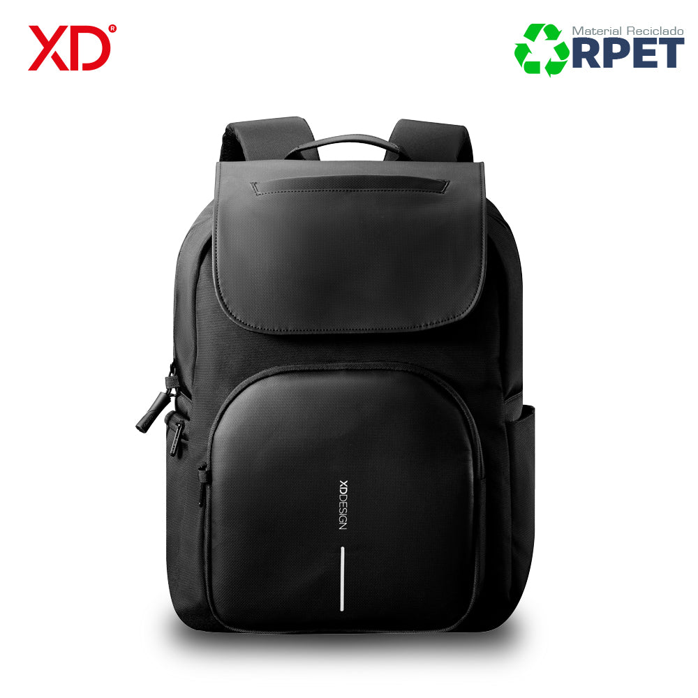 Morral backpack en poliéster RPET, tres bolsillos externos con cremallera, un bolsillo lateral con cremallera, un bolsillo lateral sin cremallera. Espaldar acolchado. Bolsillo para portátil de hasta 15. Bolsillo oculto en el espaldar y correa para sujetarla a trolley. Medidas: 40 cm x 35 cm x 17 cm. . Marca: 10 cm Screen