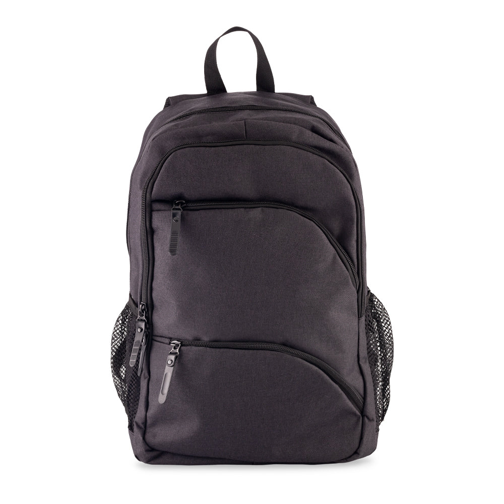 Morral backpack en poliéster, con dos bolsillos laterales de malla y cuatro frontales con cremallera. Apto para portátil de 15. Incluye reata posterior para adaptar a trolley. Espaldar acolchado. Medidas: 43 cm x 29 cm x 13 cm. Marca: 15 cm Screen. Ficha Técnica