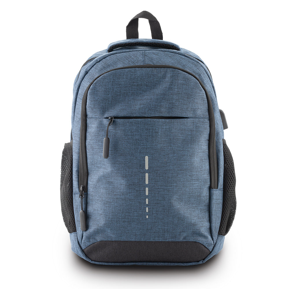 Morral en poliéster. Compartimento principal con bolsillo para laptop de 15. Dos bolsillos externos, dos mallas laterales y puerto USB para carga desde el interior no incluye pila. Medidas: 27 cm x 42 cm x 13 cm Marca: 12 cm Screen