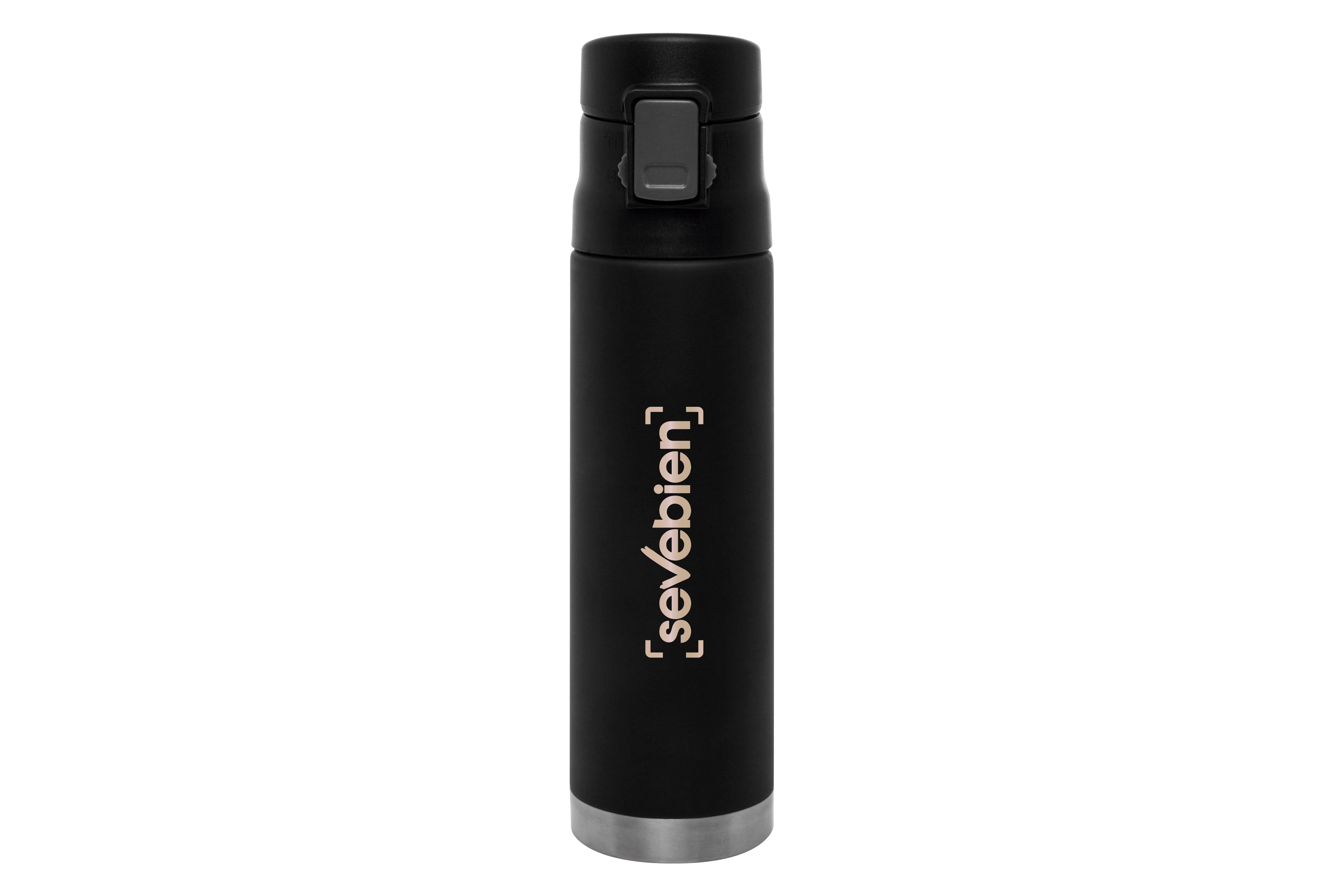 Ø 7 x 25,5 cm. Capacidad 500 ml. Acero inoxidable. Mug doble pared. Interior de acero 304 y exterior de acero 201. Tapa plástica con botón a presión de apertura. Traba de seguridad. Mantiene las bebidas frías y calientes por más tiempo. Presentación en caja de regalo. . Medidas Ancho: 31.0 . Medidas Alto: 28.5 . Medidas Profundidad: 53.0