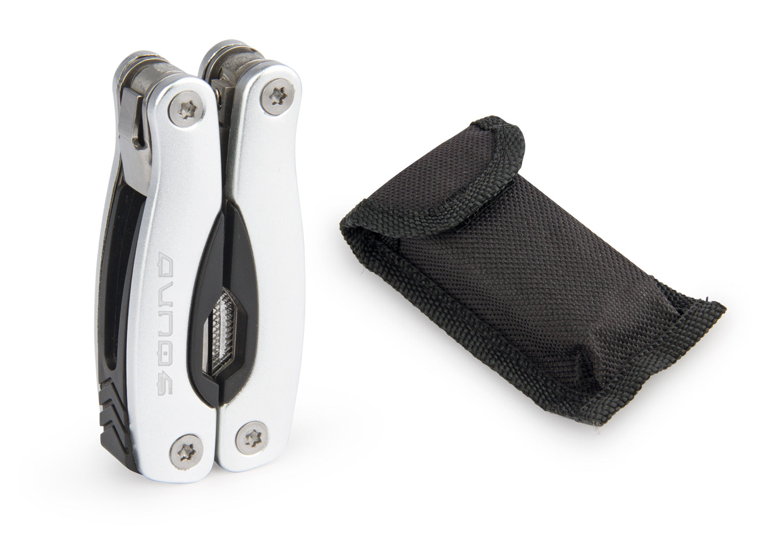 Multitool con cortafríos, destapador, 2 destornilladores planos phillips, sierra, navaja y lima. Estuche en lona con cierre en velcro.. Area impresion: Screen: 2 x 3 cm. Láser: 0,5 x 2 cm. . Medidas Largo: 1.50 . Medidas Ancho: 3.00 . Medidas Alto: 6.70