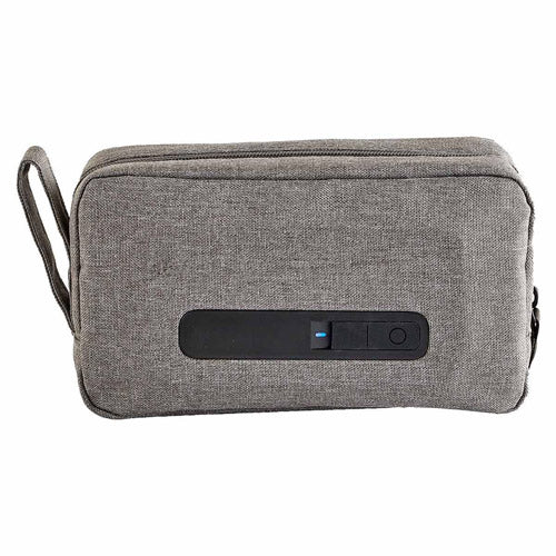 Neceser con luz UV sanitizadora, para celular, artículos de oficina etc. No reflejar la luz UV directo a tu cara o piel. Incluye cable USB.. Medidas: 21 x 12 x 7.7 cm . Material: Poliéster