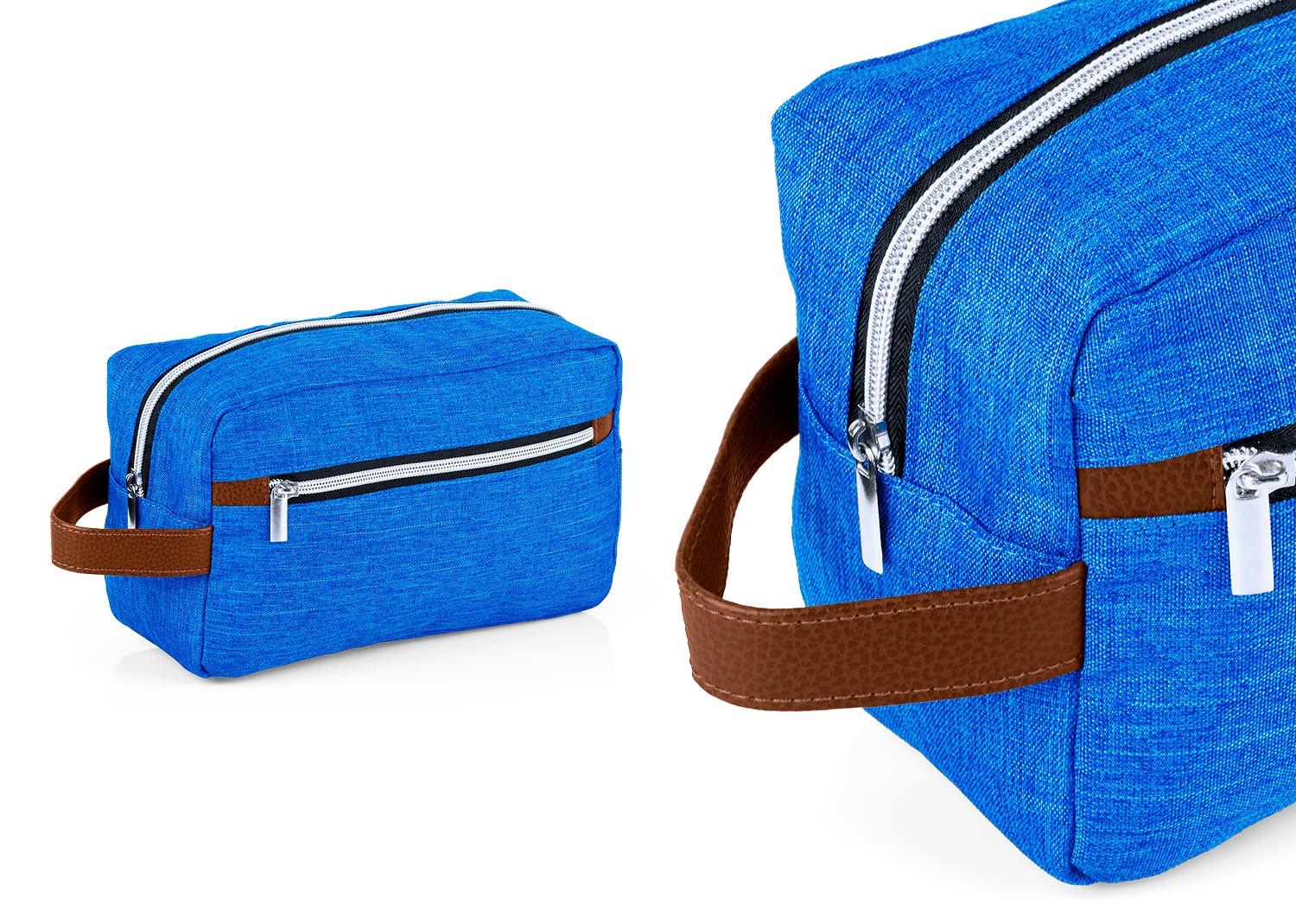 Estuche con manija imitación cuero, bolsillos principal y auxiliar con cierre de cremallera. Ideal para los productos de aseo personal yo cosméticos.. Area impresion: 8 x 6,5 cm. . Medidas Largo: 10.00 . Medidas Ancho: 26.50 . Medidas Alto: 16.00