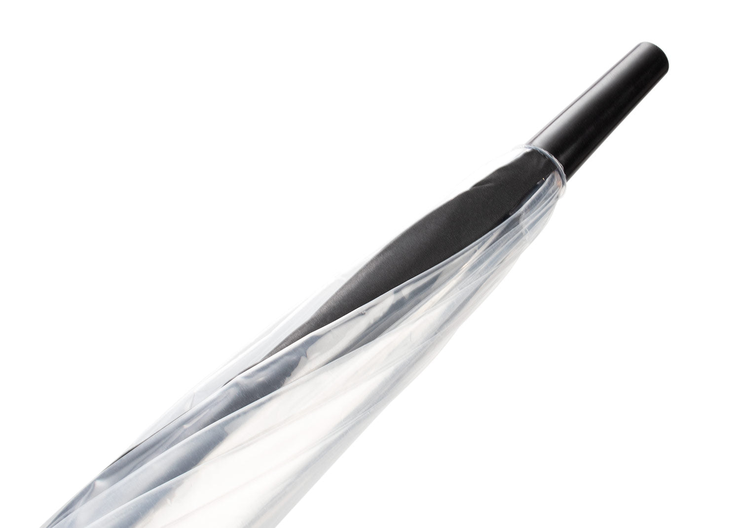 Paraguas de 23 con 8 cascos, diseño tipo Apolo de cúpula amplia que ofrece mayor cobertura. Apertura manual completa, estructura reforzada con marco de metal Zicify y varillas largas de fibra de vidrio para mayor resistencia al viento. Eje de metal cromado que aporta durabilidad y estilo. Cubierta en POE 10C transparente con un panel de tela pongee en color sólido, creando un contraste elegante. Mango de plástico con acabado de goma, ergonómico y en color a juego con la tela pongee, ideal para un agarre cómodo y seguro.. Area impresion: Screen: (15 X 10). . Medidas Largo: 83.5