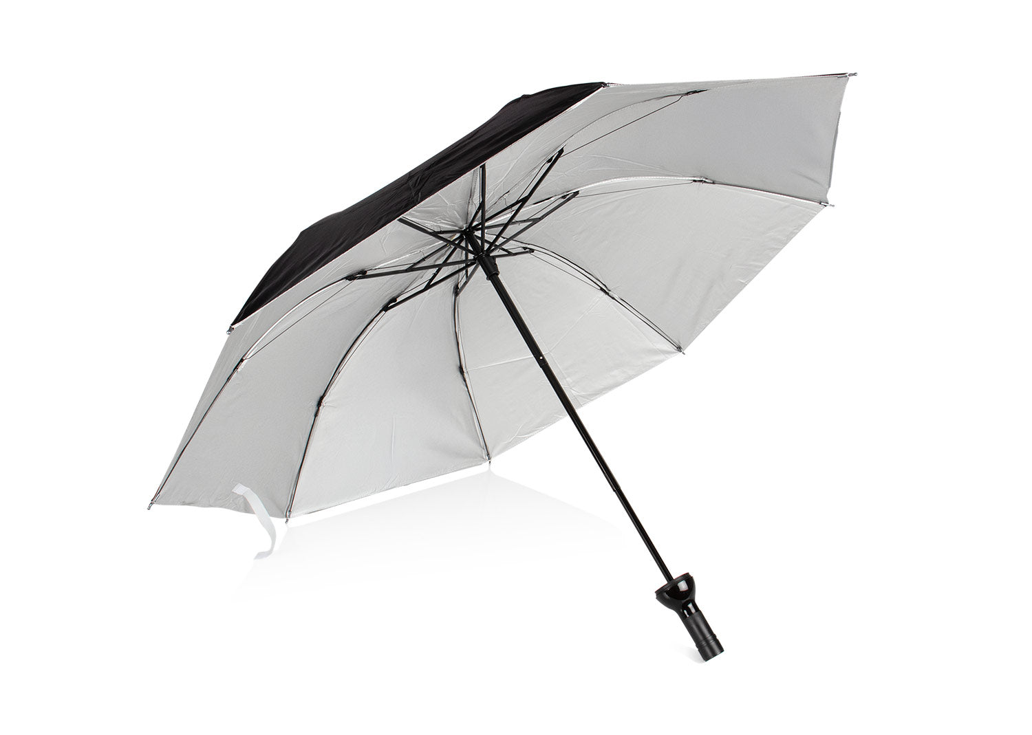 Paraguas de alta calidad confeccionado con tela Pongee 190T, con eje y varillas metálicas. Su estructura de aluminio ligero y duradero garantiza una protección confiable en días lluviosos. Incluye estuche en forma de botella. ParaguasSombrilla. Area impresion: Screen Paraguas: 20 cm X 11 cm. Tampo Estuche: 7 cm x  cm