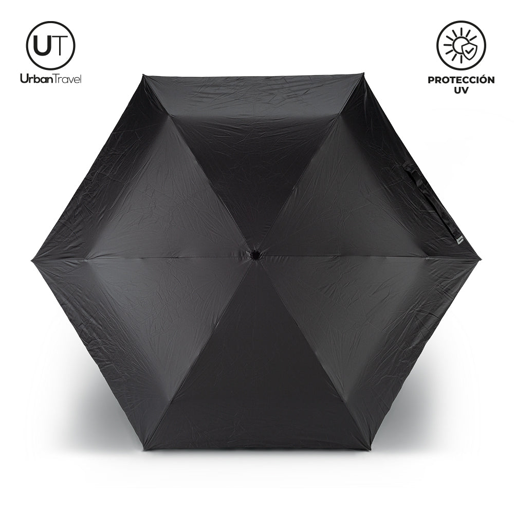 Paraguas plegable en poliéster pongee 30D. Apertura y cierre manual. Herraje metálico y fibra de vidrio. Protección UV UPF50. Con forro para cargar. Ultra ligero. Mango plástico. 6 cascos. Medidas: 20 Cobertura: 93 cm x Ancho: 46 cm Largo Total: 19 cm. Marca: 15 cm Screen. Ficha Técnica