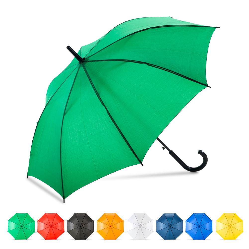 Poliéster. Apertura automática, cierre manual. Mango curvo plástico con acabado caucho y herraje metálico. 8 cascos. Medidas: 21.5 Cobertura: 87 cm Ancho del Casco: 36 cm Largo Total: 78 cm Marca: 20 cmScreen Ficha Técnica