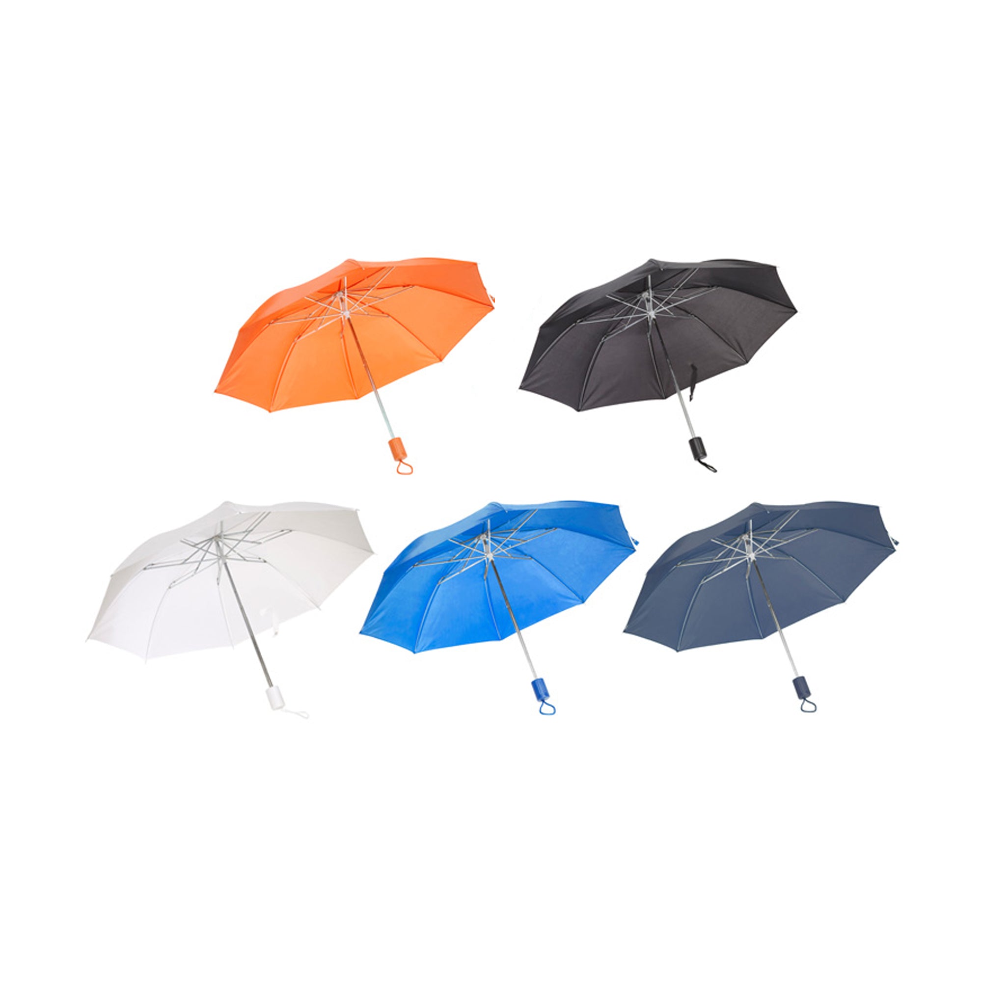 Ø 90 cm. Cerrado 32 cm. Poliéster.Extendido 50 cm. Estructura metálica 8 varillas. Plegable en tres partes. Mango plástico con cordón. Funda.  APERTURA Y CIERRE MANUAL. Medidas Ancho: 33.0 . Medidas Alto: 17.0 . Medidas Profundidad: 57.0