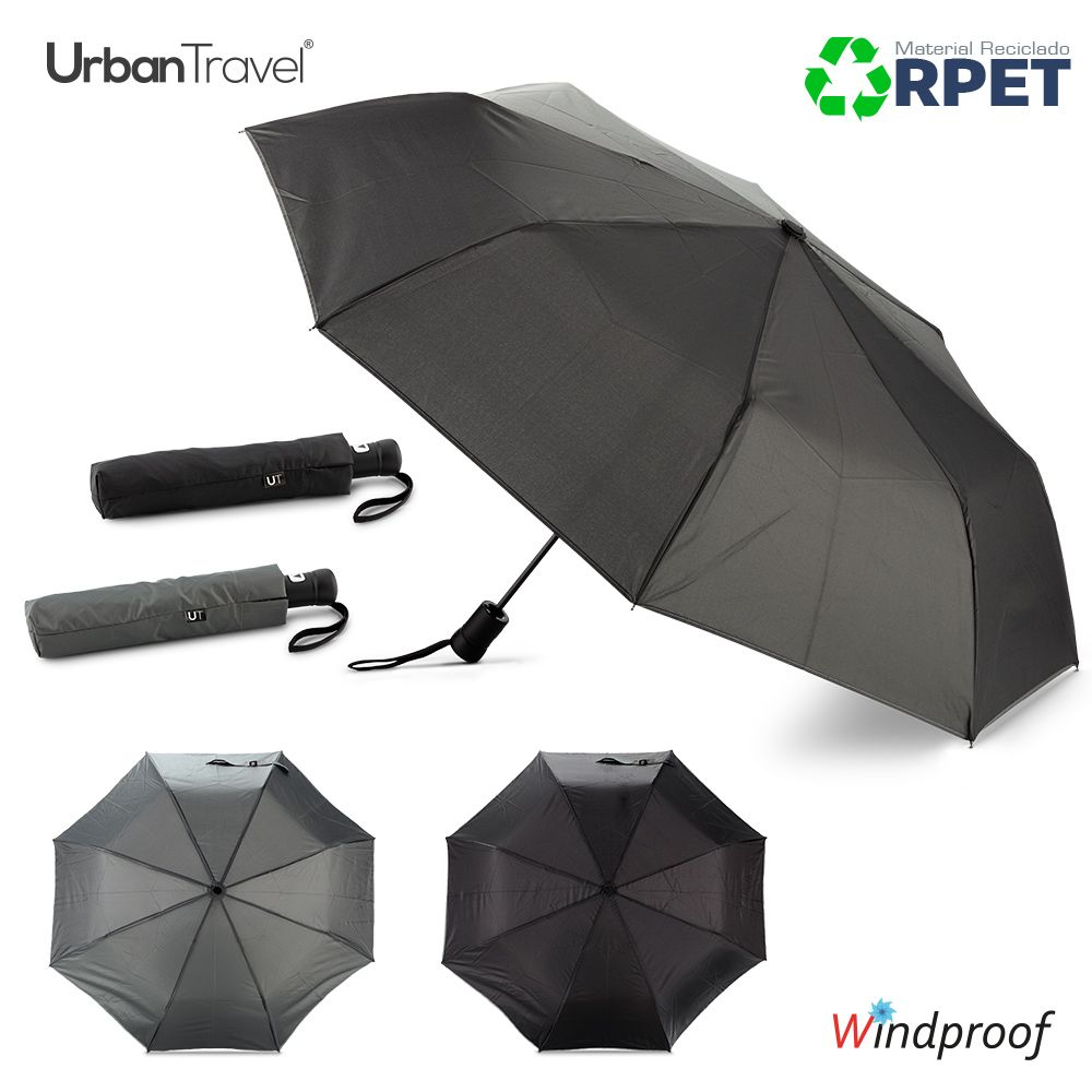 Paraguas plegable en poliéster reciclado RPET y borde reflectivo. Apertura automática. Herraje en fibra de vidrio y acero. Sistema antibrisa, mango en caucho. Con forro para cargar. 8 cascos. Medidas 21 Cobertura: 99 cm Ancho del casco: 37.5 cm Largo Total: 30.5 cm . Marca: 20 cm Screen Ficha Técnica