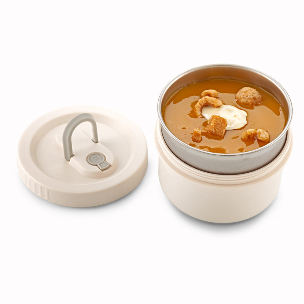 Portacomidas doble pared en plástico e interior en acero inoxidable de 660 ml. Medidas: 9 cm x 11.5 cm díametro.. Marca: 3.5 cm Tampografía. Ficha Técnica