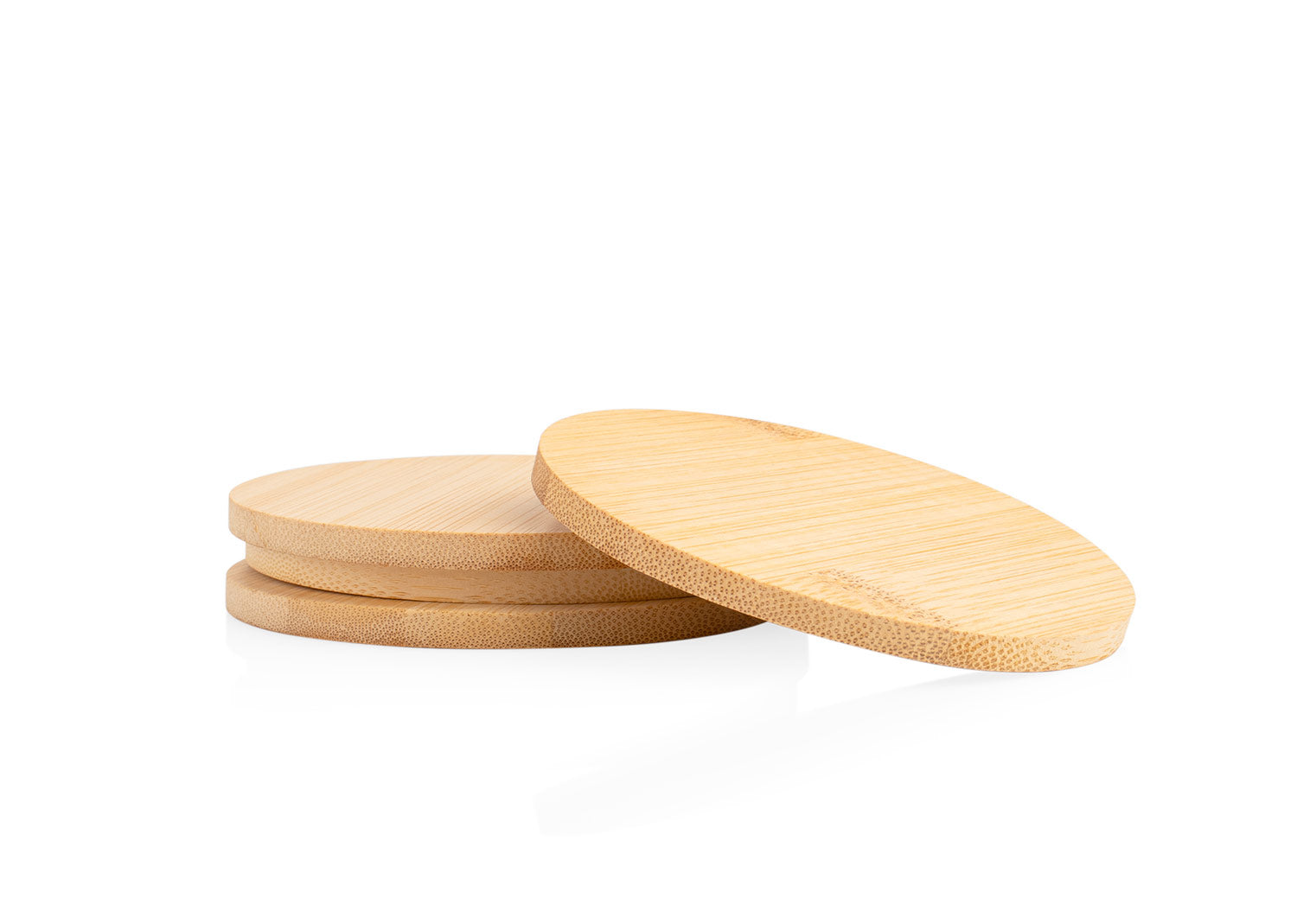 Juego de 4 portavasos hechos en madera de bambú empacados en bolsa de algodón.. Area impresion: Screen Bolsa: (8 X 10). Tampo Portavaso: (6 X 5). Láser: (4 X 4).