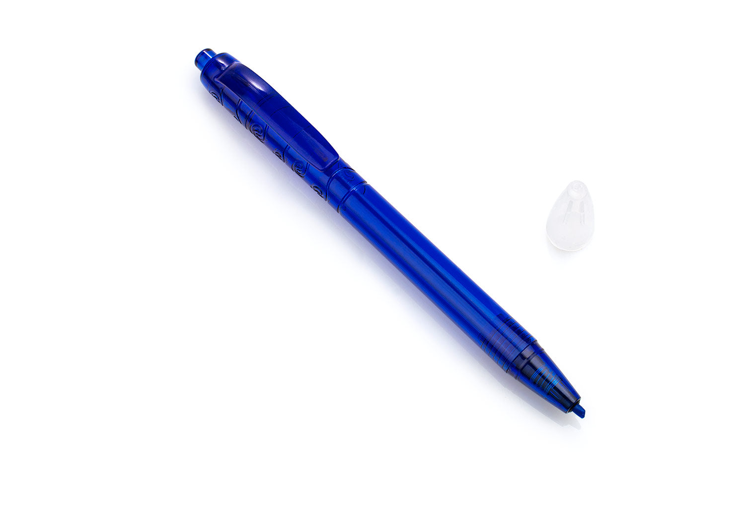 Resaltador en forma de Bolígrafo, con sistema de apertura retráctil y tapa transparente para protección, grabado en la parte superior.. Area impresion: Tampo: 7mm alto . Medidas Largo: 15.50