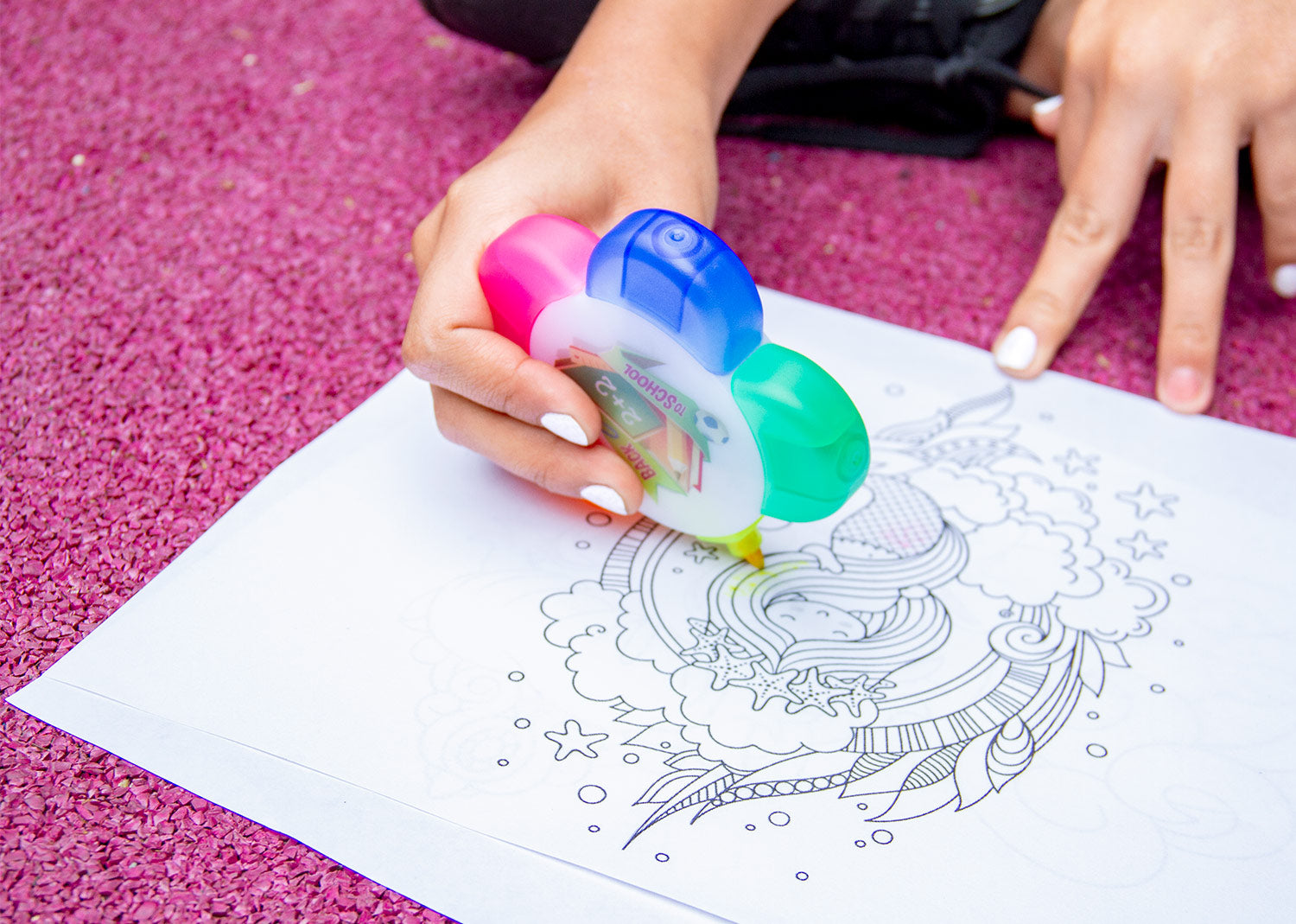 Resaltador en forma de flor, con 5 colores de tinta: azul, rosado, naranja, amarillo, verde.. Area impresion: Tampo: 5 x 2,4 cm. Digital: 4 x 4 cm. . Medidas Largo: 1.90 . Medidas Ancho: 9.50 . Medidas Alto: 9.50