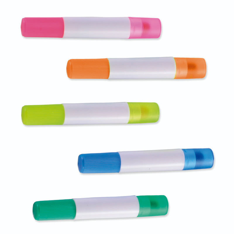 Resaltador Plástico. No se seca. Ver estuche OF-353E Medidas: 8.5 cm x 1 cm diámetro Marca: 3 cm Tampografía Producto con condiciones especiales de alistamiento,consulte con su asesora el tiempo de entrega. Ficha Técnica. Resaltador Individual . Set de 3 piezas con estuche