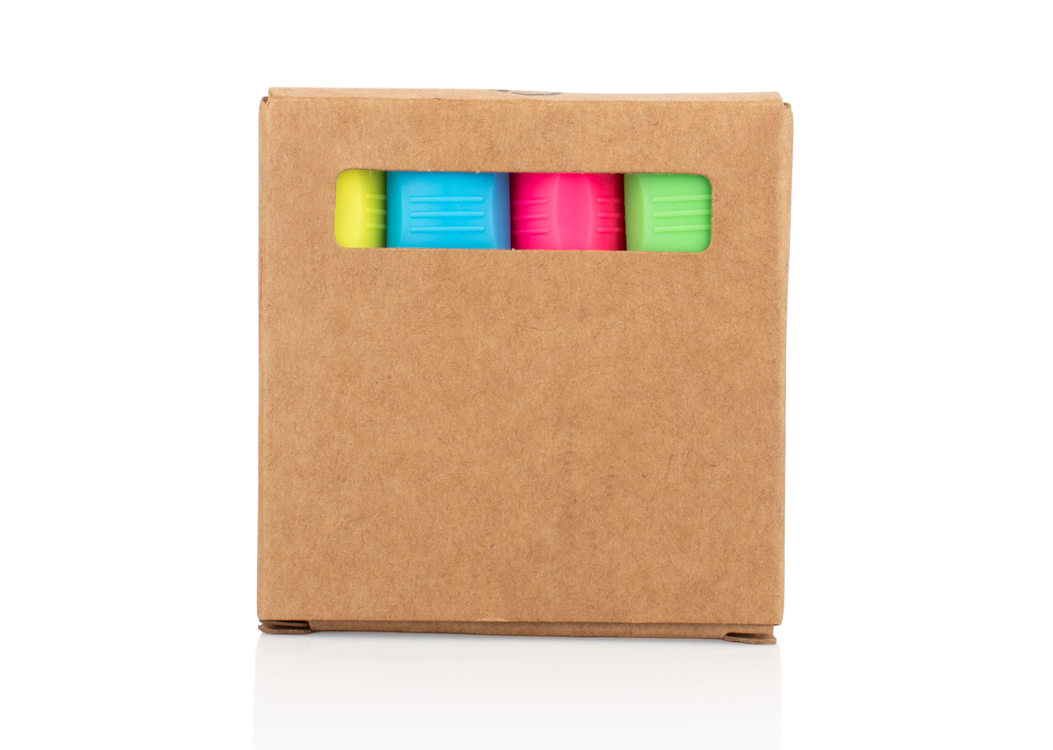 Este mini juego incluye cuatro resaltadores 7 X 1,7 en colores surtidos, presentados en una caja de cartón con ventana que permite visualizar su contenido. Su tamaño compacto los hace ideales para llevar en estuches o bolsos pequeños, ofreciendo una solución práctica para resaltar información en cualquier momento.. Area impresion: . . Medidas Largo: 1.8 . Medidas Ancho: 7 . Medidas Alto: 7.2