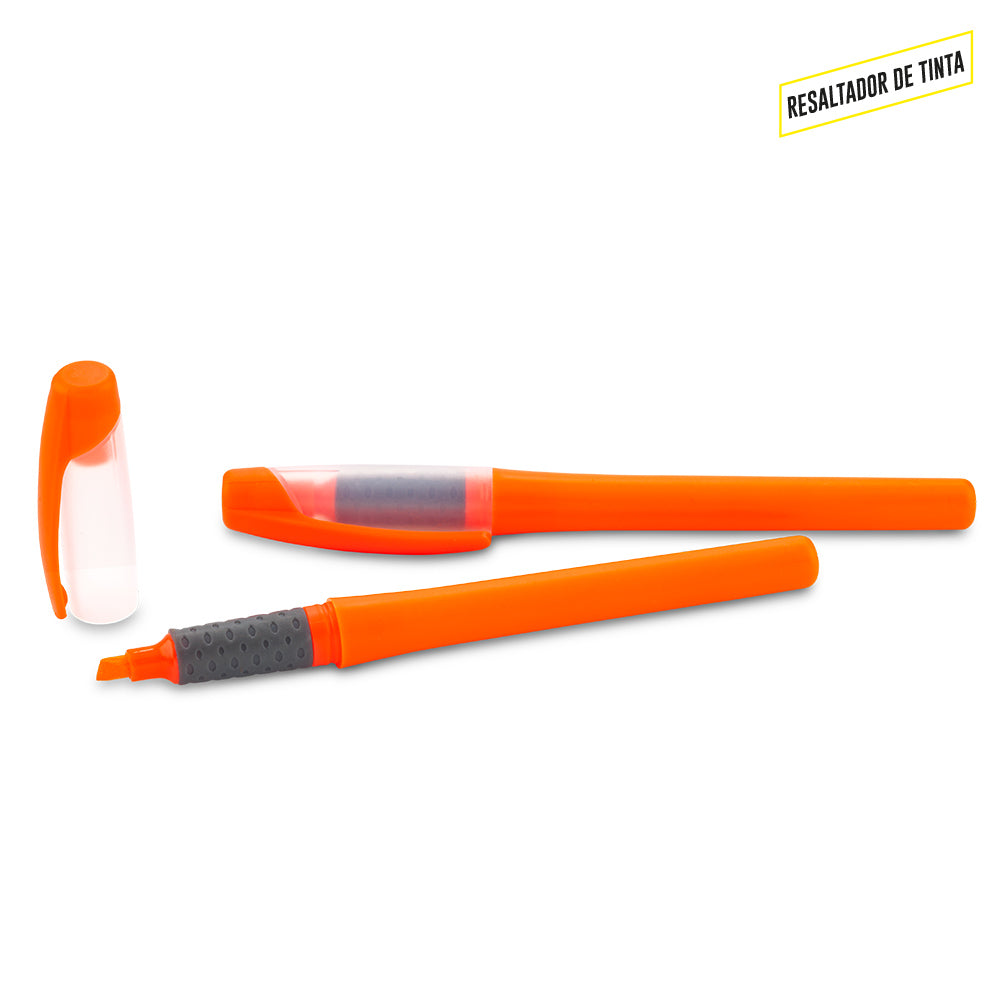Resaltador de tinta plastico con tapa. Medidas: 14.3 cm Marca: 4 cm Tampografia