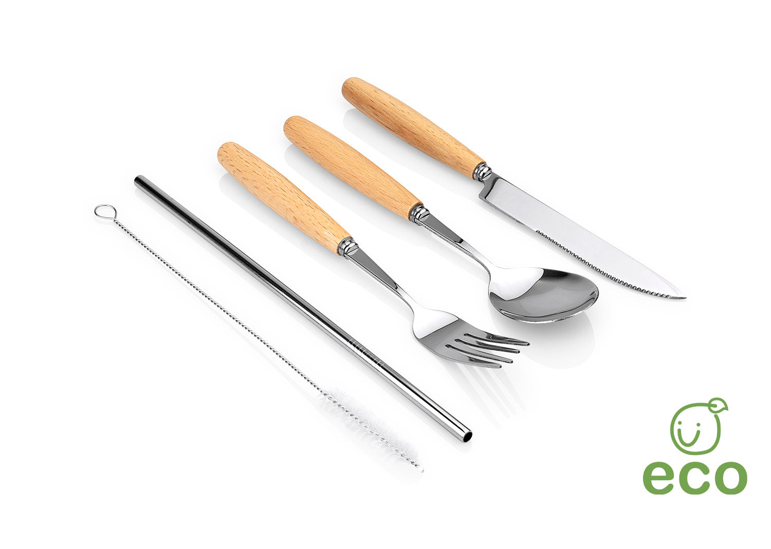 Set de Cubiertos en Acero inoxidable con mango en bambú, Bolsa de algodon para guardar, incluye Tenedor, Cuchara, Cuchillo y Pitillo con cepillo para limpiarlo. Sugerencias de cuidado y limpieza de pitillos: Dejar sumergido en agua con sal, durante dos horas y antes de su primer uso. Esto para prolongar la vida útil del producto. Posteriormente se puede lavar con agua y jabón y secar al aire. Producto de uso personal. No se aceptan devoluciones.. Area impresion: Láser: Utencilios: 1x3 cm Pitillo: 4x0,5 cm - Screen: 10 cm de ancho x 4 cm alto