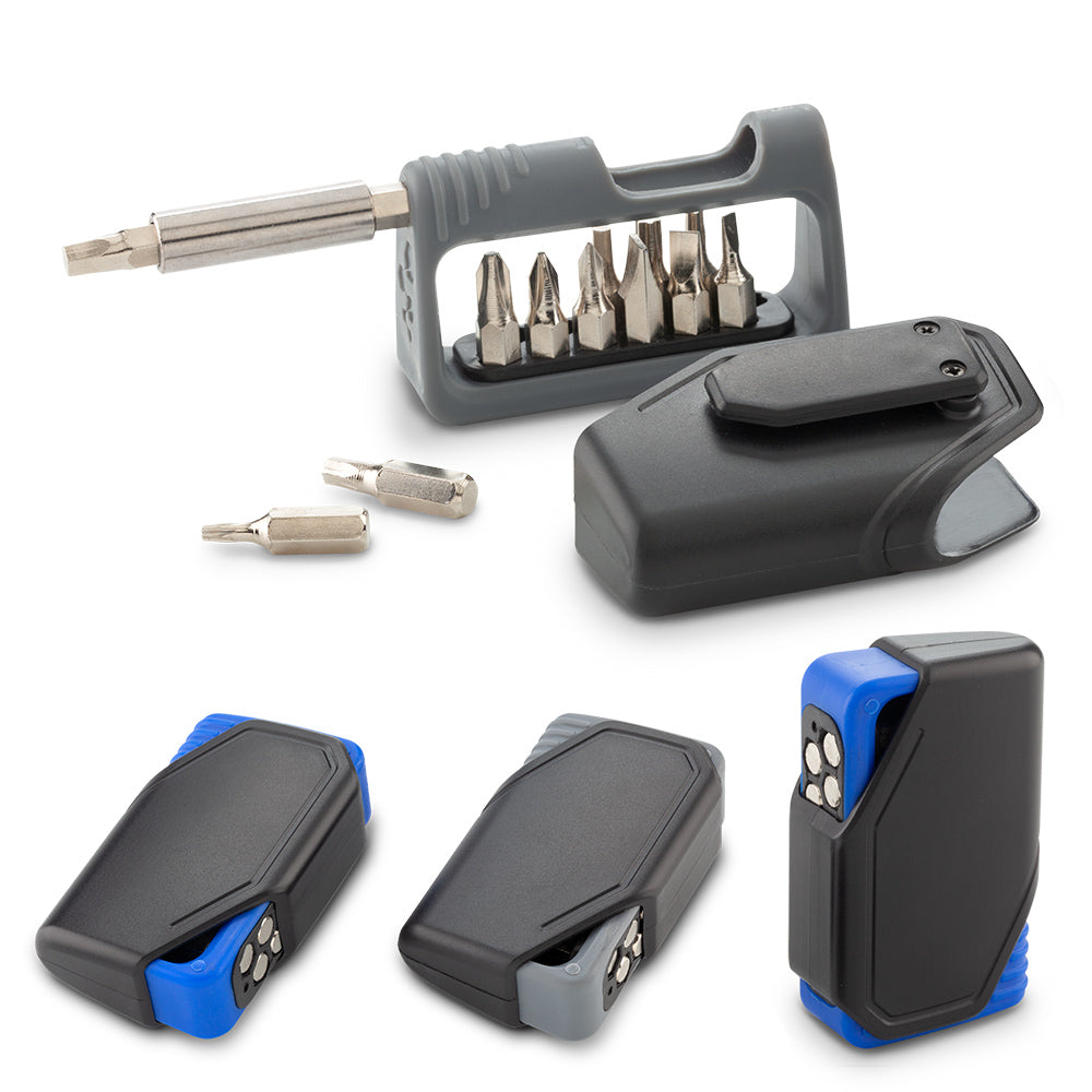 Mini set de destornilladores en estuche plástico que funciona como mango de agarre. Empaque caja individual. Medidas: 7 cm x 4.5 cm x 2 cm Marca: 3.5 cm Tampografía Ficha Técnica. oferta