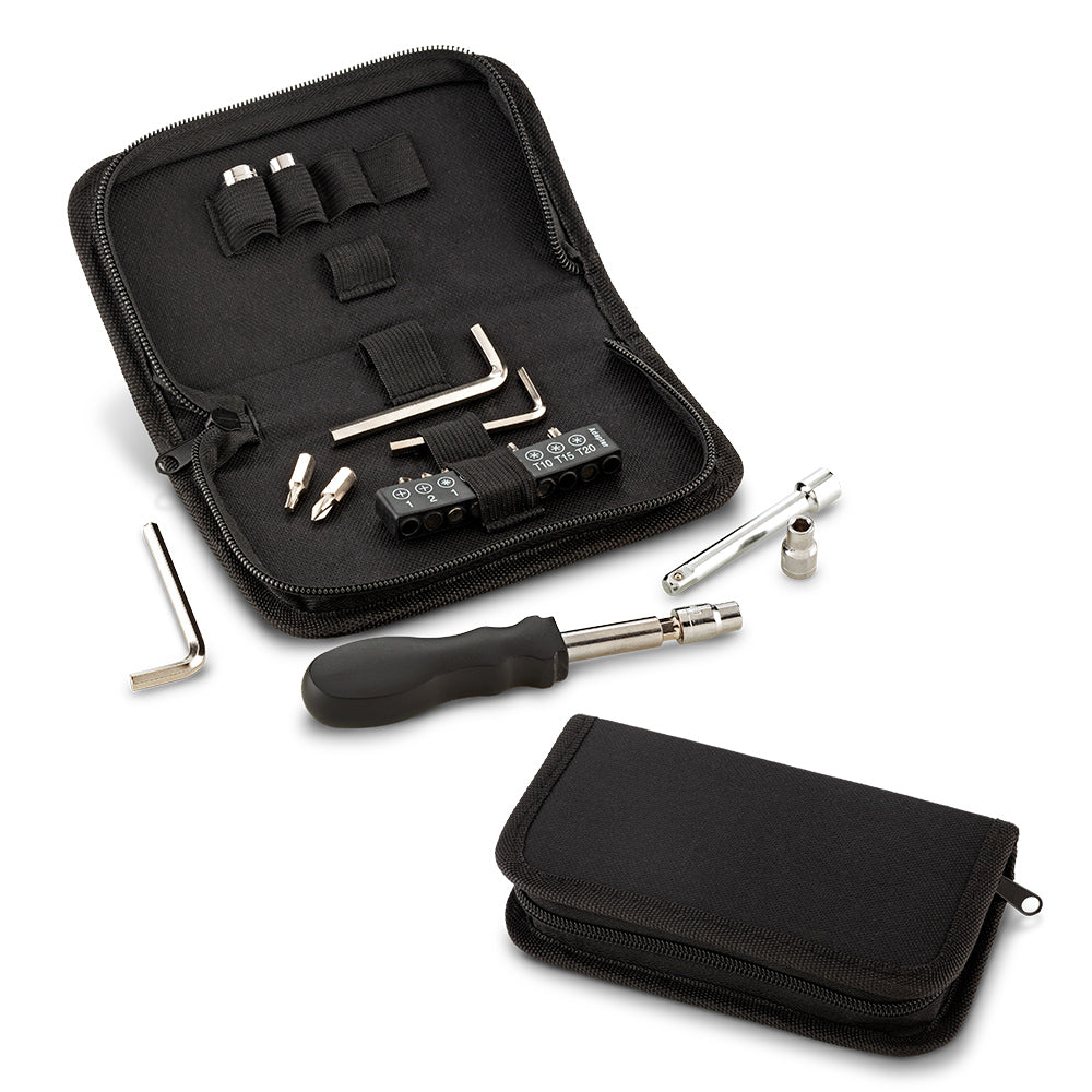 Set de herramientas de 19 piezas estuche en poliester. Medidas Cerrado: 17.5 cm x 9.5 cm x 3.7 cm Marca: 9 cm Screen Ficha Técnica