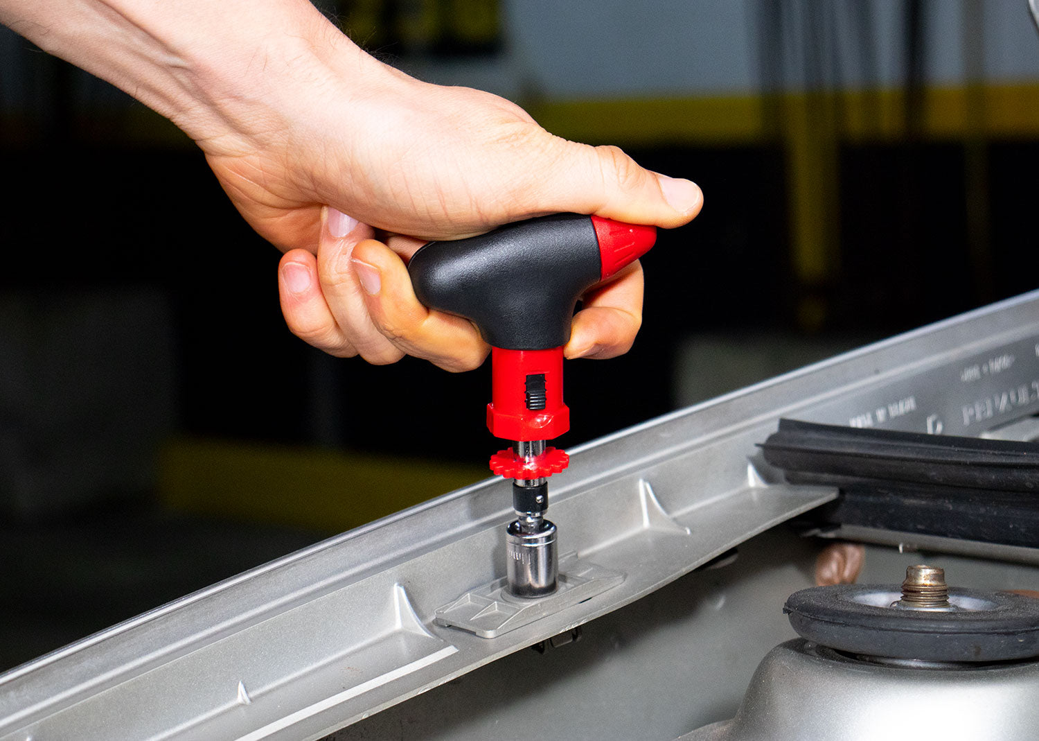Caja de herramientas con linterna externa 4 pilas AA no incluidas. Incluye ratchet, 8 copas estándar, 10 puntas de destornillador, 4 destornilladores de precisión, un portapuntas magnético.. Area impresion: 1 x 3 cm. . Medidas Largo: 8.00 . Medidas Ancho: 12.50 . Medidas Alto: 19.00