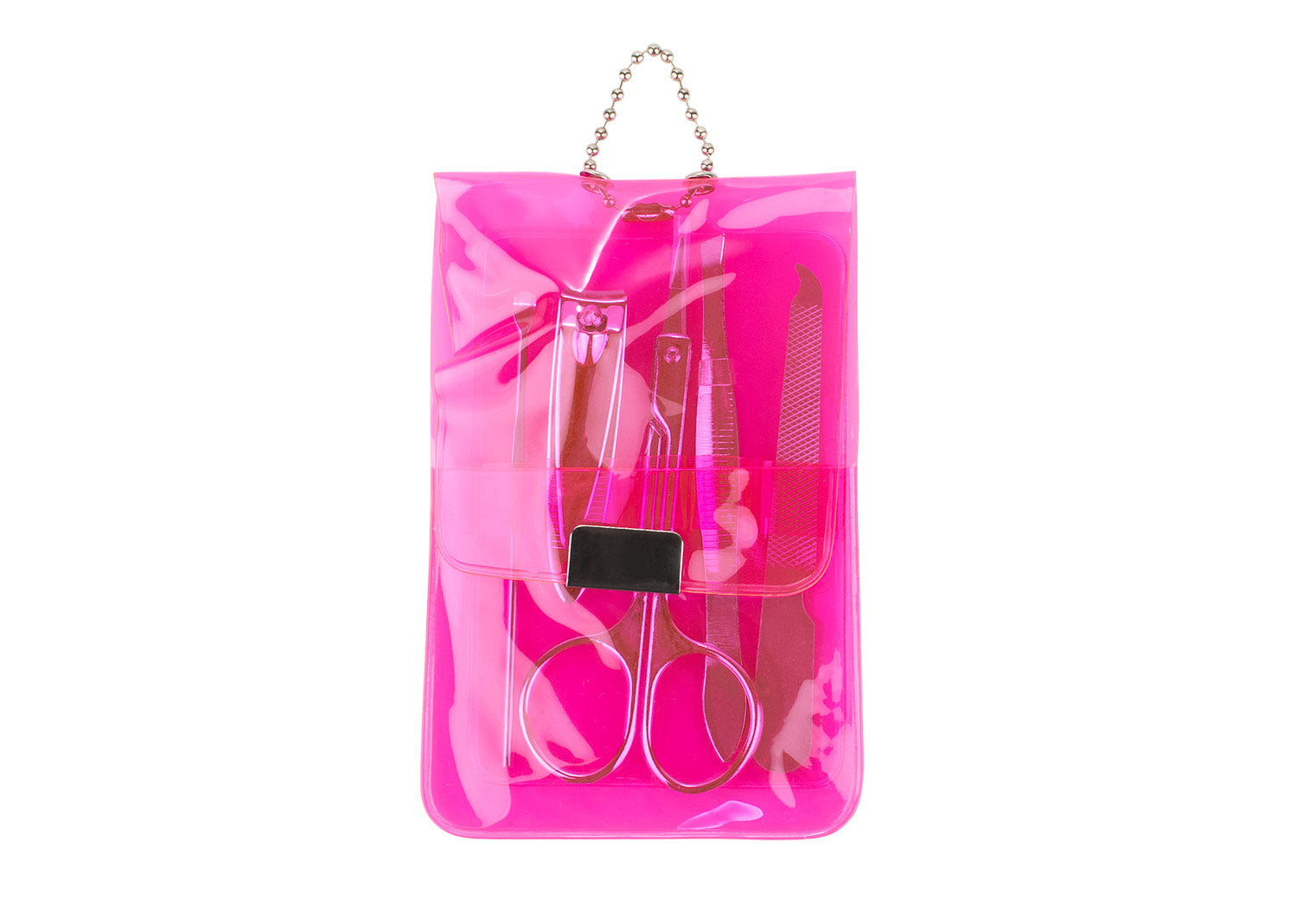Set de manicure en estuche plástico con cierre magnético. Incluye: Tijeras, lima, cortauñas, depilador y bajacutículas.. Area impresion: 4,5 x 3 cm. . Medidas Largo: 0.4 . Medidas Ancho: 7.5 . Medidas Alto: 11
