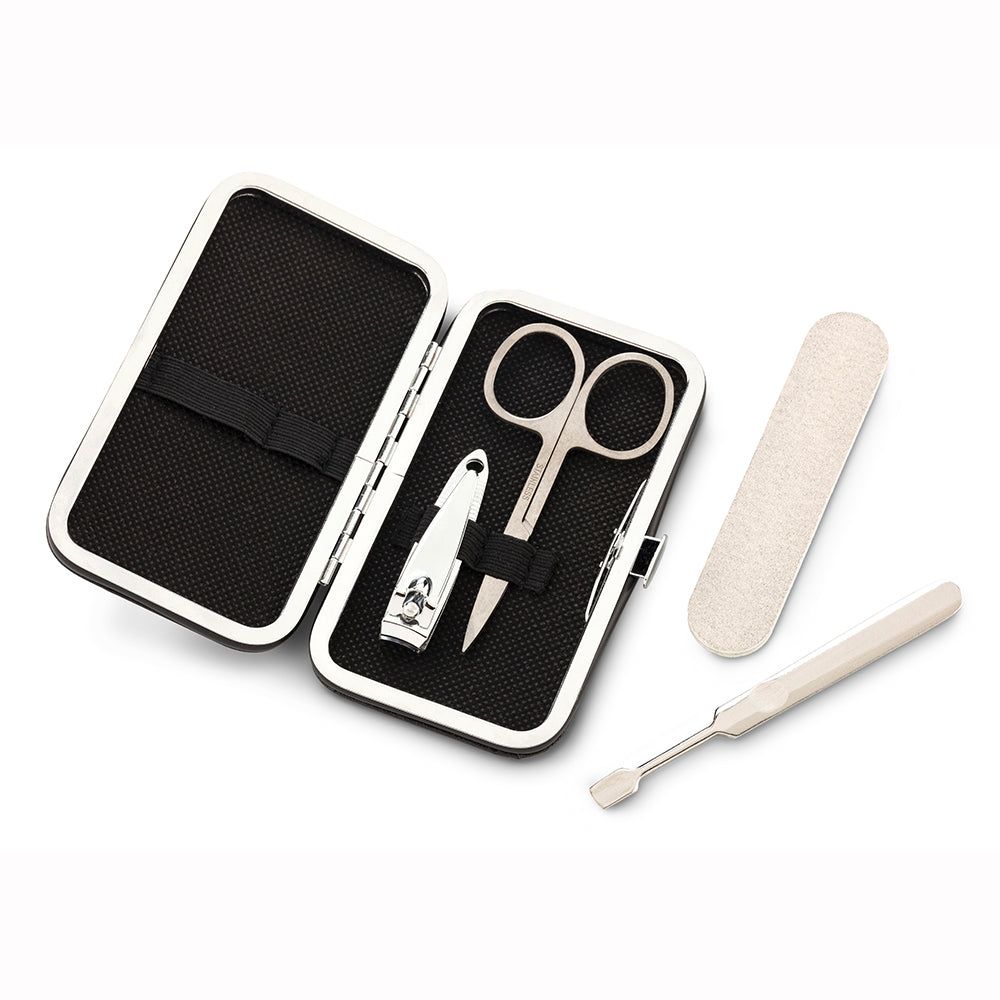 Set de manicure en estuche rígido en poliuretano. 4 accesorios. Medidas: 11 cm x 6 cm x 1 cm. Marca: 4 cm Tampografía. Ficha Técnica