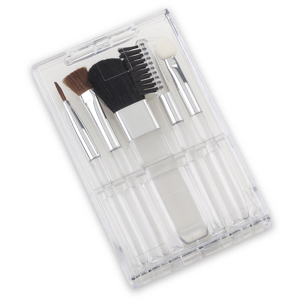 5 brochas para maquillaje en estuche plástico transparente. Artículo para uso personal, no se admiten cambiosdevoluciones. Medidas: 11 cm x 7 cm Marca: 5.5 cm Tampografía Ficha Técnica