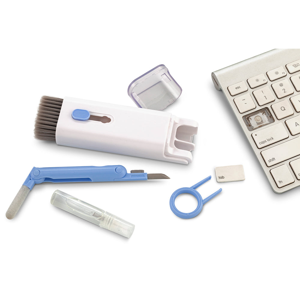 Set plástico multipropósito limpiador 7 en 1. Medidas: 12.2 cm x 4.1 cm x 2.6 cm. Marca: 1.5 cm Tampografía.