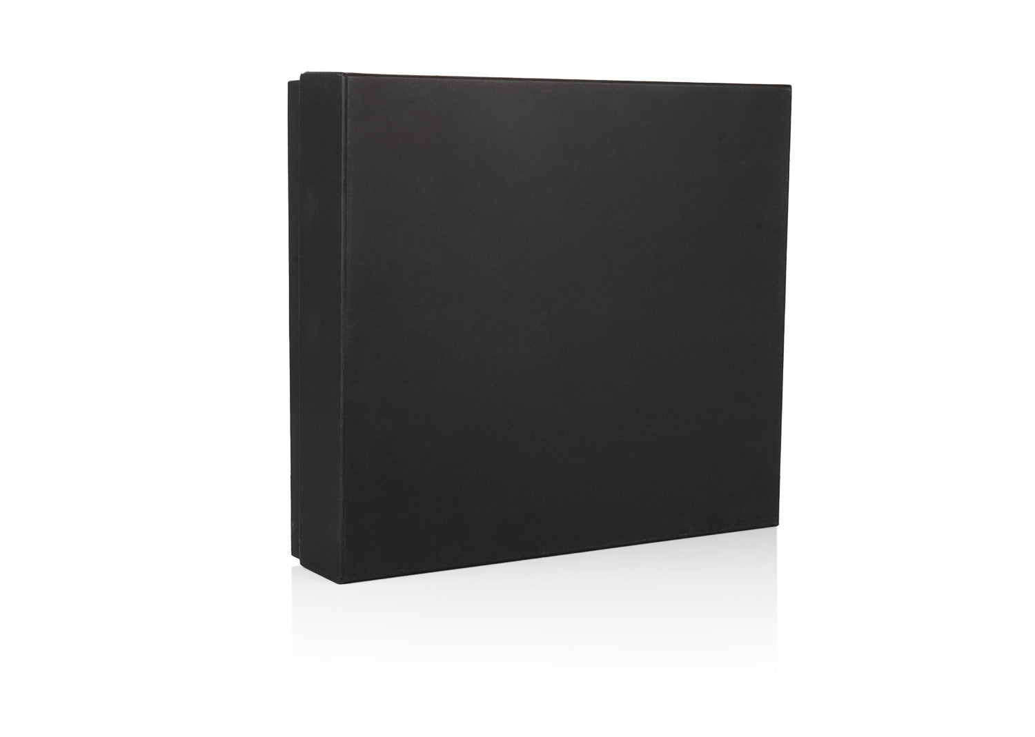 Set ejecutivo con estuche de lujo. Incluye bolígrafo en aluminio con sistema twist, libreta con 80 hojas rayadas, banda elástica de cierre lateral, cinta separadora y portabolígrafo. Además, botella de doble pared de 600 ml 20 Oz en acero inoxidable con tapa de rosca y banda de silicona para transportar con facilidad. Además incluye un Paraguas mini. ParaguasSombrilla. Area impresion: Screen caja:25 cm X 25 cm. Screen paraguas:20 cm X 10 cm. Screen libreta:9 cm X 16 cm. Tampo botella: 7 cm x 3 cm/ 5 tintas. Tampo mango botella: 5 cm x 1,5 cm 1 tinta. Láser botella:6 cm x 3 cm Láser Agenda:5 cm x 1,5 cm Láser Boligrafo:4 cm x 0,7 cm