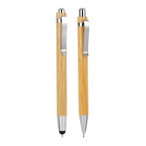 Bolígrafo con touch screen y lapicera 0.5 mm. Mecanismo pulsador. Incluye estuche.. Medidas: 1 x 13.7 cm . Material: Madera