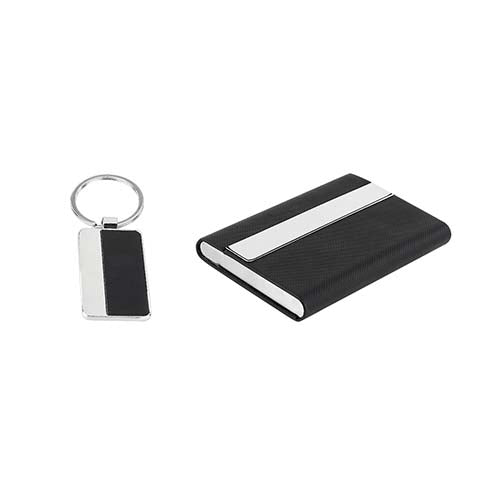 Incluye tarjetero, llavero y caja de regalo.. Medidas: 3 x 8.5 cm Llavero / 9.7 x 6.7 cm Tarjetero . Material: Curpiel / Metal