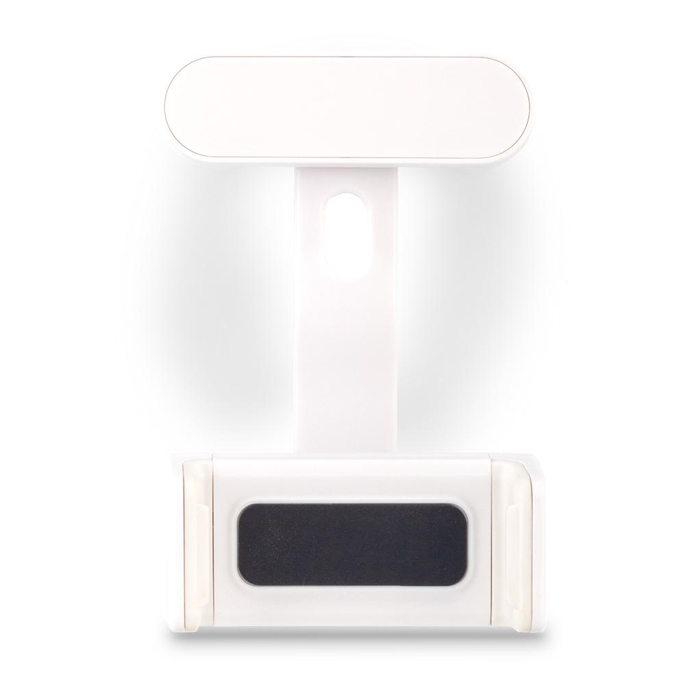 Soporte plástico para colocar en la rejilla del ventilador del carro. Base con rotación de 360°. Empaque caja individual. Medidas: 11 cm x 6.7 cm Marca: 4 cm Tampografía