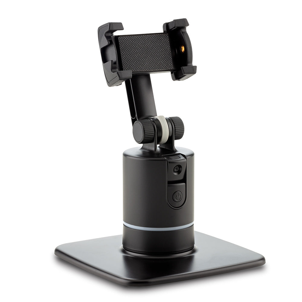 Soporte para móviles panorámico con sensor de seguimiento facial de 360°. No necesita conectarse a Bluetooth para su funcionamiento. Clip para dispositivo móvil extensible hasta 11cm. Coloque su smartphone y realice fotos o videos con movimiento sin ayuda de otras personas. Debe funcionar sobre una base estable y sin interferencias. Empaque caja individual. Medidas: 19 cm x 8.5 cm Medidas base: 14.5 cm x 14.5 cm Sin marca.
