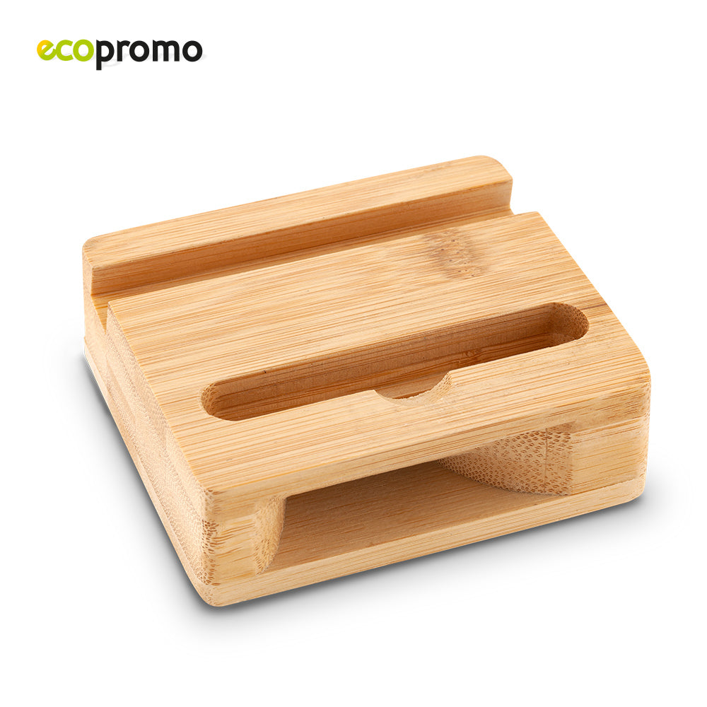 Soporte en bambú para móviles con amplificador de sonido. Medidas: 9.8 cm x 8.8 cm x 3 cm Marca: 3.5 cm Láser