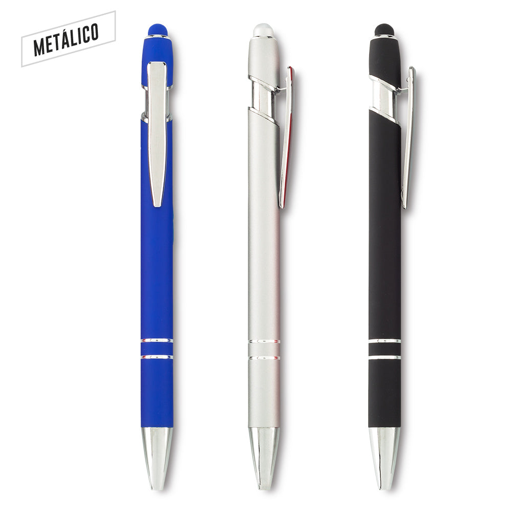 Bolígrafo metálico con acabado caucho. Mecanismo push. Medidas:14.3 cm Marca:3 cmLáser Venta mínima y en múltiplos de caja de 50 unidades.  Ficha Técnica
