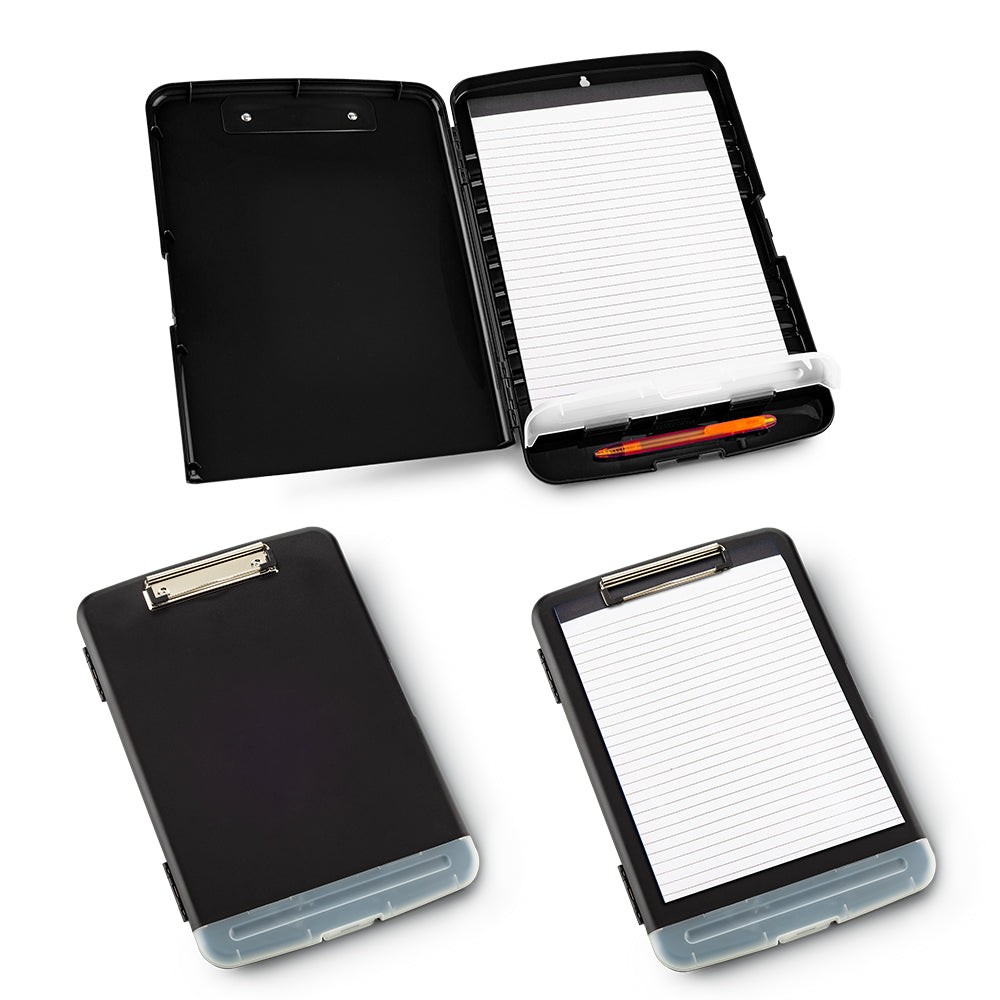 Tabla plástica para anotar. Con compartimiento para hojas y otro para bolígrafos. Con clip metálico. Medidas: 36 cm x 24.5 cm x 3 cm. Marca: 12 cm Screen. Ficha Técnica