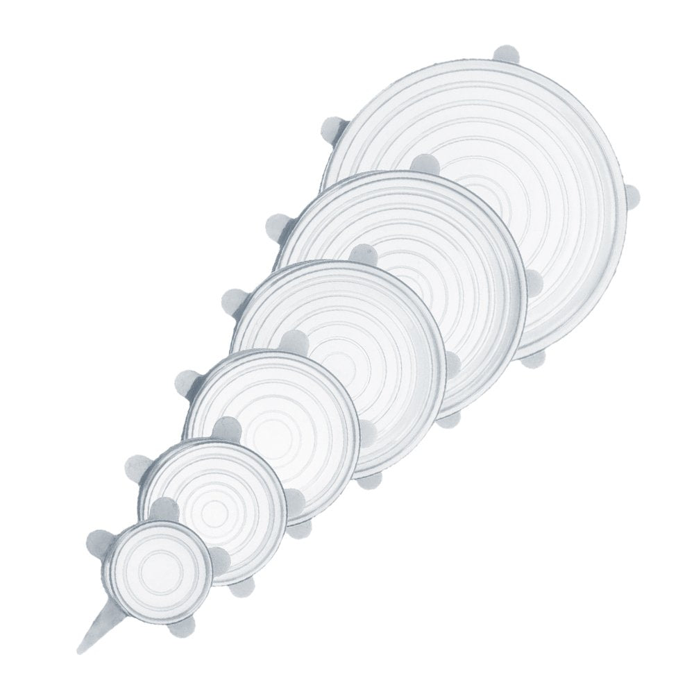Set de 5 piezas de diferentes tamaños en silicona elástica de grado alimenticio y adaptable a cualquier tapper o bowl de vidrio preferiblemente. ------------------------------ Impresión: Tampografía silicona Tamaño Área Impresa: 1.2 x 1.2 cm -------------------------------- Caja: 59 x 29 x 37 cm. 200 unidades 25 KG