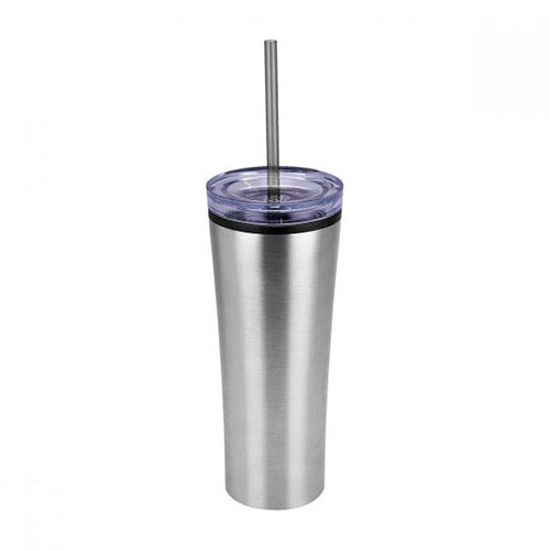 Doble pared. Pared interna plástico, pared externa acero inoxidable. Tapa y popote de plástico. Incluye caja individual.. Medidas: 6.3 x 19.9 cm . Material: Acero Inoxidable / Plástico