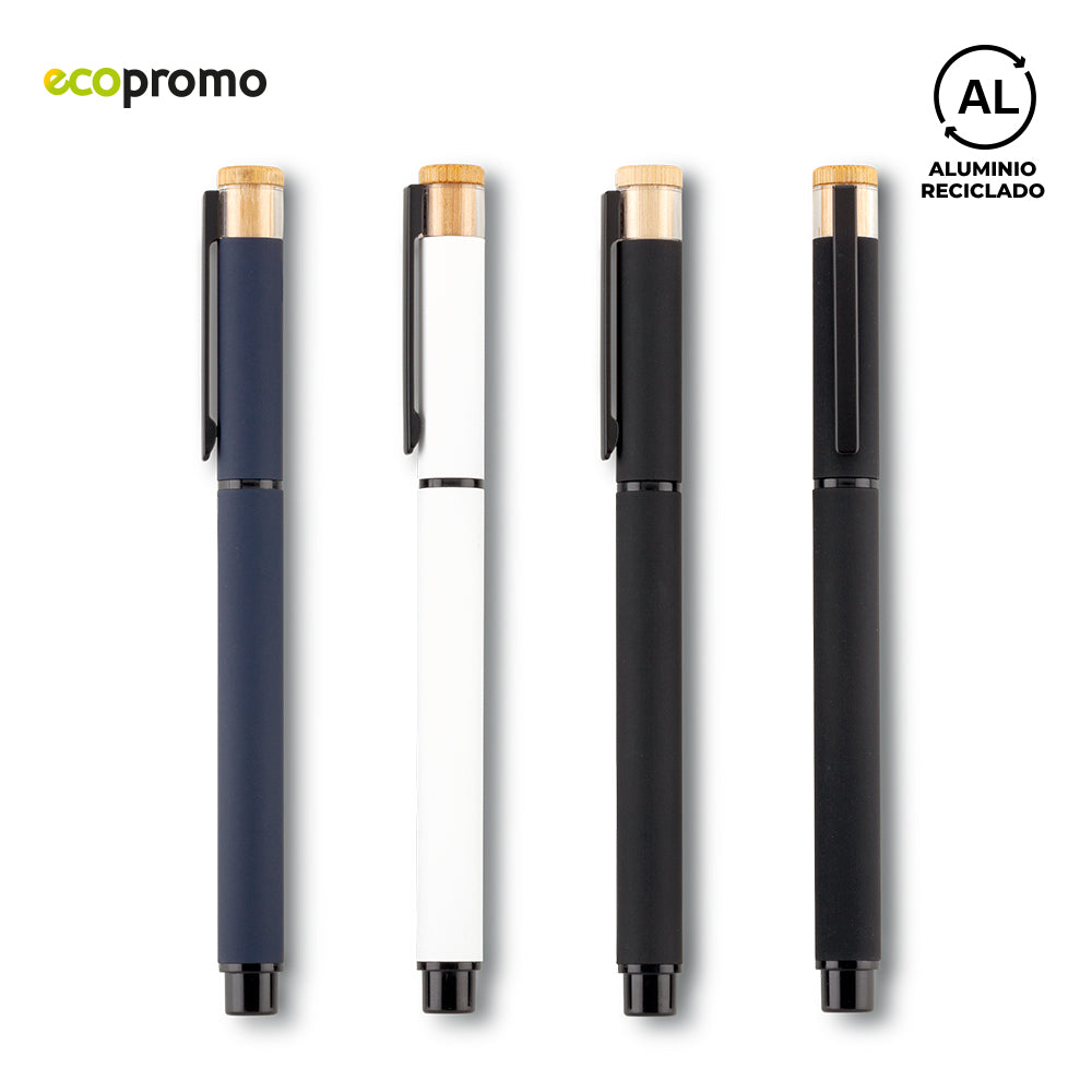 Bolígrafo roller en aluminio reciclado con clip metálico. Medidas: 14 cm. Marca: 3.5 cm Láser Tampografía. Ficha Técnica Venta mínima y en múltiplos de caja de 50 unidades por color.