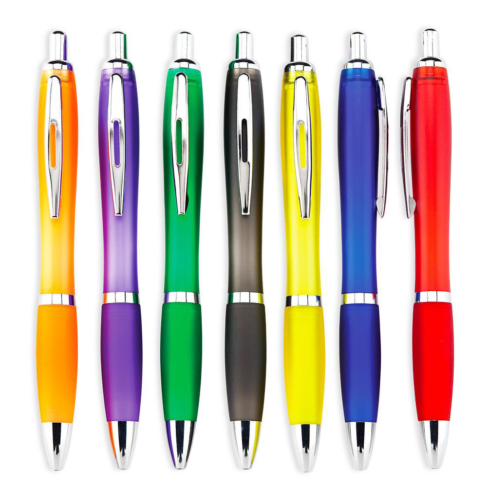 Bolígrafo plástico. Clip metálico. Medidas: 14 cm Marca: 4 cm Tampografía Venta mínima y en múltiplos de caja de 50 unidades por color.